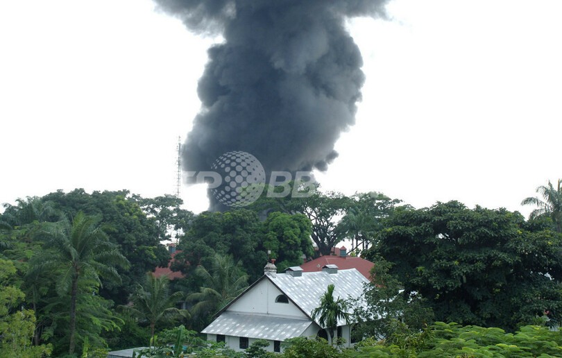 写真は首都キンシャサ(Kinshasa)で同日、反政府勢力の襲撃を受け、黒煙を巻き上げる石油精製所。(c)AFP/LIONEL HEALING