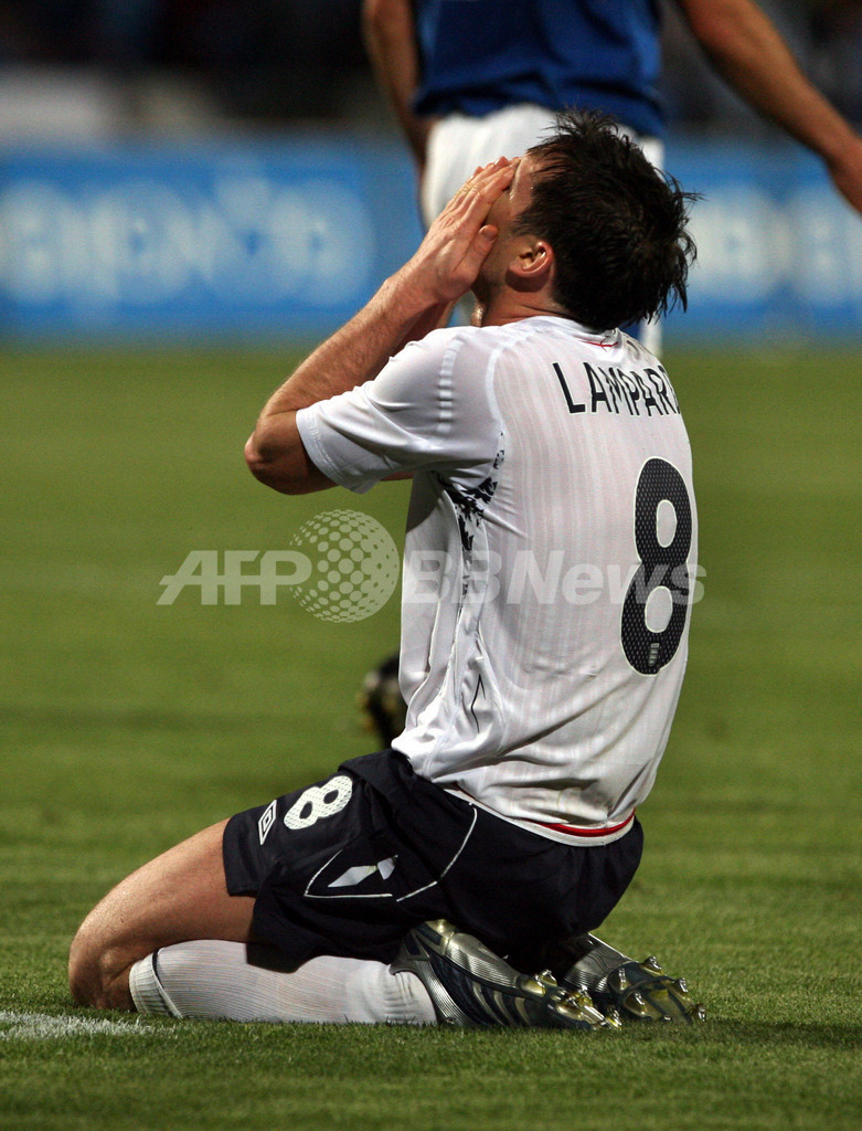 写真は、落胆しながらピッチを去るイングランドのジョン・テリー(John Terry)とランパード。(c)AFP/PEDRO UGARTE