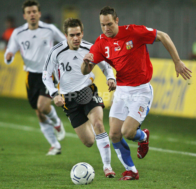 一方、敗れたチェコは後半に同点に追いつこうと反撃を開始し、後半10分にトマス・ロシツキー(Tomas Rosicky)がボレーシュートを放つなど決定的なチャンスもあり得点を返せずにいたが、後半31分にミラン・バロス(Milan Baros)がドイツのGKイェンス・レーマン(Jens Lehmann)の意表をつくシュートで、チェコは1点を返して巻き返しを図るも少し遅すぎた。。(c)AFP/DDP/ROBERT MICHAEL
