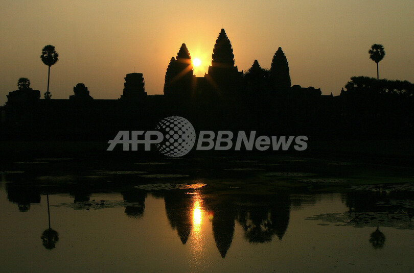 【シエムレアプ/カンボジア 25日 AFP】Khun Sokhaさんは、アンコールワット(Angkor Wat)の外壁に腰掛けて寺院の特徴的な尖塔(せんとう)の真上に朝日が昇る瞬間を待つ何百人という観光客とともに夜明けを迎える。夜明け前のもやが立ち込める中、カメラのフラッシュが光る。