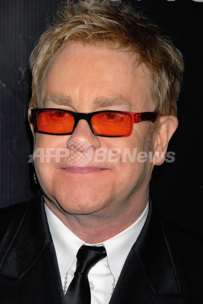 写真は、米国ビバリーヒルズで開催されたロデオ・ドライヴ・ウォーク・オブ・スタイル賞に出席したエルトン・ジョン(2007年2月8日撮影)。(c)AFP/Getty Images/Charley Gallay