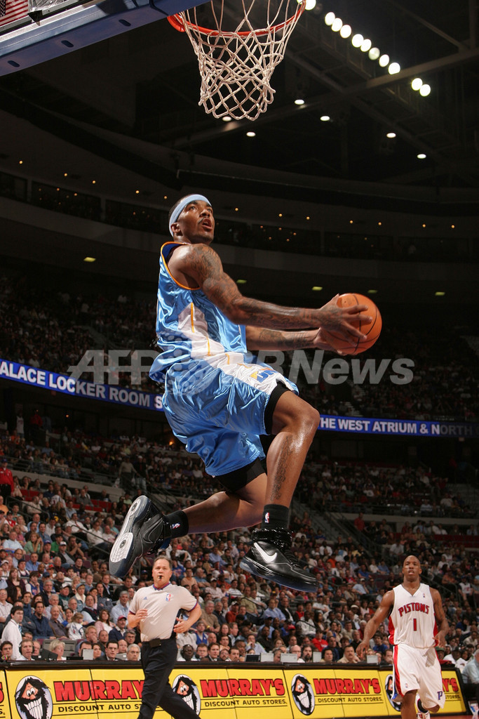【オーバンヒルズ/米国 26日 AFP】06-07NBA、デトロイト・ピストンズ(Detroit Pistons)vsデンバー・ナゲッツ(Denver Nuggets)。ナゲッツのJ・R・スミス(J.R. Smith)はベンチスタートながら21得点5リバウンドを記録する活躍を見せも、試合はナゲッツが109-113でピストンズに敗れて今季34敗目を喫した。写真は、フリーでダンクシュートに飛び上がるJ・R・スミス。(c)AFP/Getty Images David Sherman