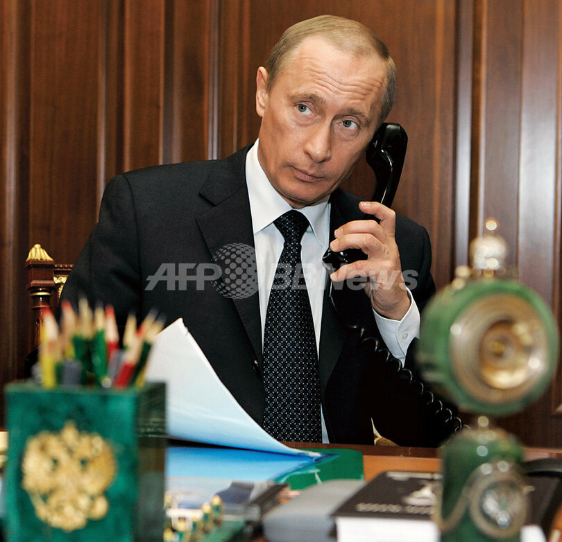 写真は、クレムリンの執務室で電話するプーチン大統領(2006年12月4日撮影)。(c)AFP/ITAR-TASS/DMITRY ASTAKHOV
