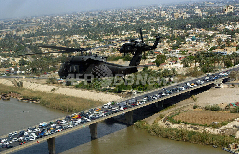写真は同日、バグダッド上空を飛行する米軍のヘリコプター。(c)AFP/WATHIQ KHUZAIE