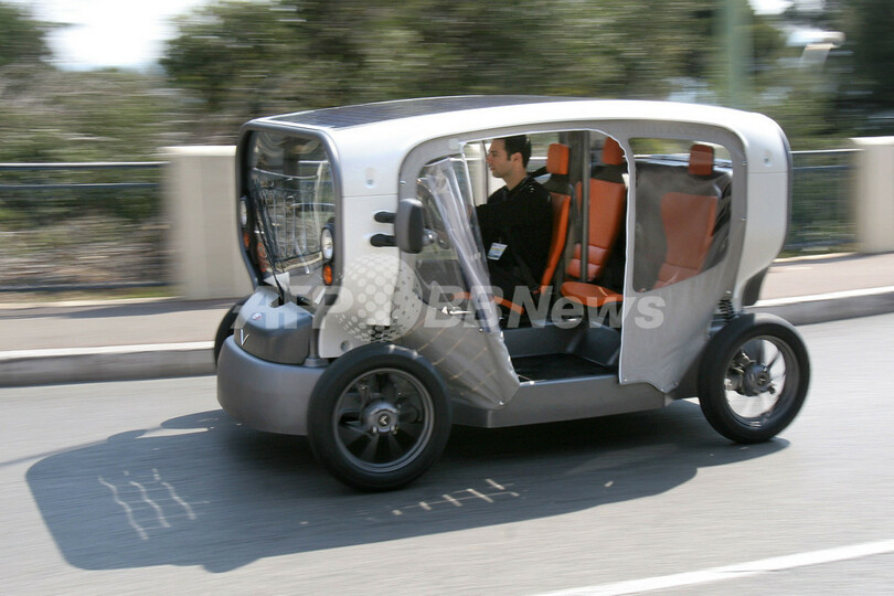 【モナコ 30日 AFP】モナコで29日、回生エネルギーを利用した環境自動車を展示するEVER(Ecologic Vehicles & Renewable Energies)MONACO 2007が開催された。仏自動車メーカーVenturiの「Eclectic」は太陽エネルギーを2.5平方メートルのパネルで変換し動力を得る「都市型電気自動車」。写真は披露されたElectric。(c)AFP/ERIC ESTRADE