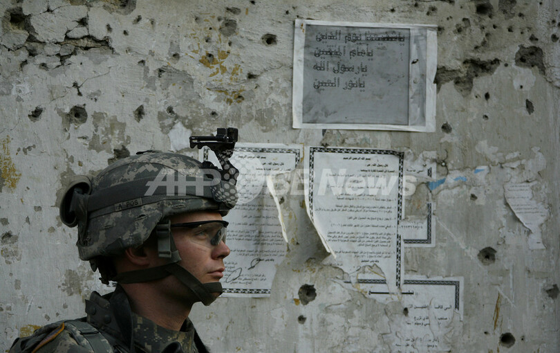 写真は29日、バグダッド市内のハイファ(Haifa)通りをパトロールする米兵。(c)AFP/PATRICK BAZ
