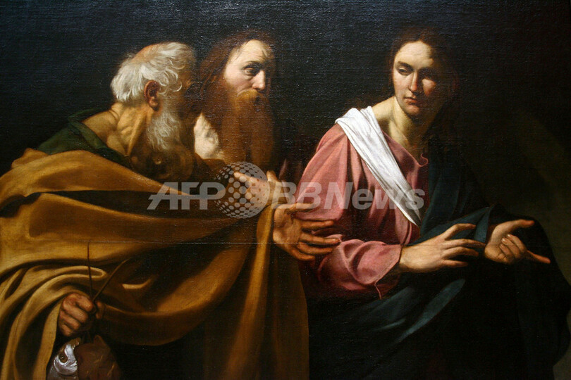 【ロンドン/英国 30日 AFP】バッキンガム宮殿(Buckingham Palace)内の「クイーンズ・ギャラリー(Queen’s Gallery)」で3月30日から2008年1月20日まで、イタリア芸術作品の王室コレクションを集めた展示会「The Art of Italy in the Royal Collection」が開催される。写真は29日の内覧会で公開された画家カラヴァッジョ(Caravaggio、1573-1610)による「The Calling of Saints Peter and Andrew」(中央)。(c)AFP/CHRIS YOUNG