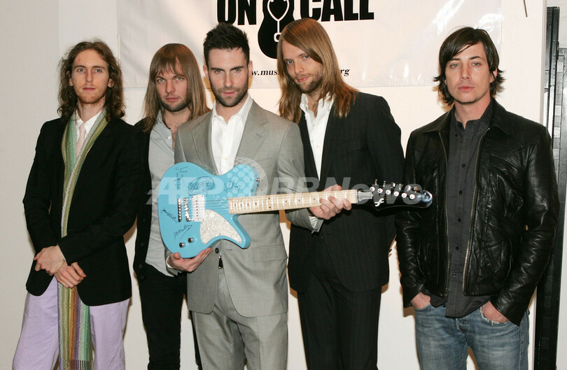 【ニューヨーク/米国 31日 AFP】今年で3回目を迎えたMusicians On Call主催のチャリティ・コンサート&オークション、3rd Annual Benefit Concert & Auctionが30日、サザビーズ(Sotheby’s)で開催された。写真は、会場に姿を見せたバンド、マルーン5(Maroon 5)のメンバー(左から)ミッキー・マデン(Mickey Madden)、ジェイムス・バレンタイン(James Valentine)、アダム・レヴィーン(Adam Levine)、ジェシー・カーマイケル(Jesse Carmichael)、マット・フリン(Matt Flynn)。(c)AFP/Getty Images Peter Kramer