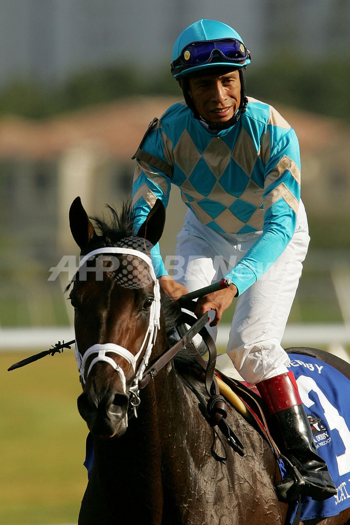 【ハランデール/米国 31日 AFP】ガルフストリームパーク (Gulfstream Park)で開催された米国競馬のG1レース、第56回フロリダダービー(56th Florida Derby、3歳、ダート)は、エドガー・プラード(Edgar Prado)騎手が騎乗するスキャットダディ(Scat Daddy)が1分49秒00で優勝を飾った。(c)AFP/Getty Images Matthew Stockman