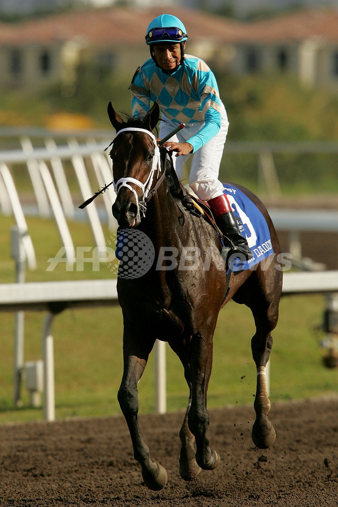 【ハランデール/米国 31日 AFP】ガルフストリームパーク (Gulfstream Park)で開催された米国競馬のG1レース、第56回フロリダダービー(56th Florida Derby、3歳、ダート)は、エドガー・プラード(Edgar Prado)騎手が騎乗するスキャットダディ(Scat Daddy)が1分49秒00で優勝を飾った。(c)AFP/Getty Images Matthew Stockman
