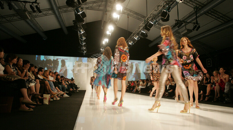 【シンガポール 2日 AFP】3月23日から10日間にわたり、シンガポール・ファッション・フェスティバル(Singapore Fashion Festival)が開かれた。期間中には、今年度のテーマ“アジアン・ビューティー”を基軸に地元出身デザイナーや海外からの招待デザイナーが新作を発表。最終日となる1日には、クロージングショーとして英国人デザイナー マシュー・ウィリアムソン(Matthew Williamson)が07/08年新作コレクションを披露した。写真は、スペシャルゲストとしてショーに登場したモデルの杏(Anne、右)。(C)AFP/ROSLAN RAHMAN