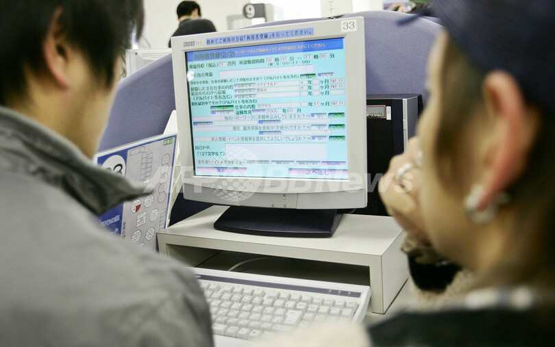 写真は、渋谷のヤングハローワークで、ネット上で仕事を探す若者たち(2005年1月28日撮影)。(c)AFP/Toru YAMANAKA