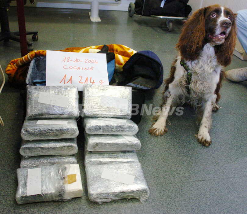 写真は、フランスのオルリー空港で麻薬捜査犬に発見されたコカイン約11kg(2004年10月22日撮影)。(c)AFP/FRANCIS ROCHE