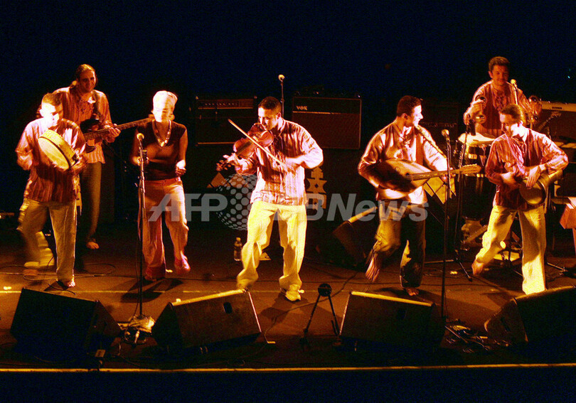 【トゥルコアン/フランス 6日 AFP】トゥアレグ族(Tuareg )のバンドTinariwenが4日、同市内のGrand Mixホールでコンサートを行った。Tinariwenは主にフランス語とタマシェク語(Tamashek )で歌い、「Tishoumaren(『無職の人の音楽』の意)」と呼ばれるスタイルで演奏する。その楽曲は、マリ共和国政府からの独立を歌ったものが多い。さらに、Tinariwenはエレキギターを用いた最初のトゥアレグ族のバンドだと言われている。写真は、ステージで演奏を繰り広げるメンバーたち。(c)AFP/FRANCOIS LO PRESTI