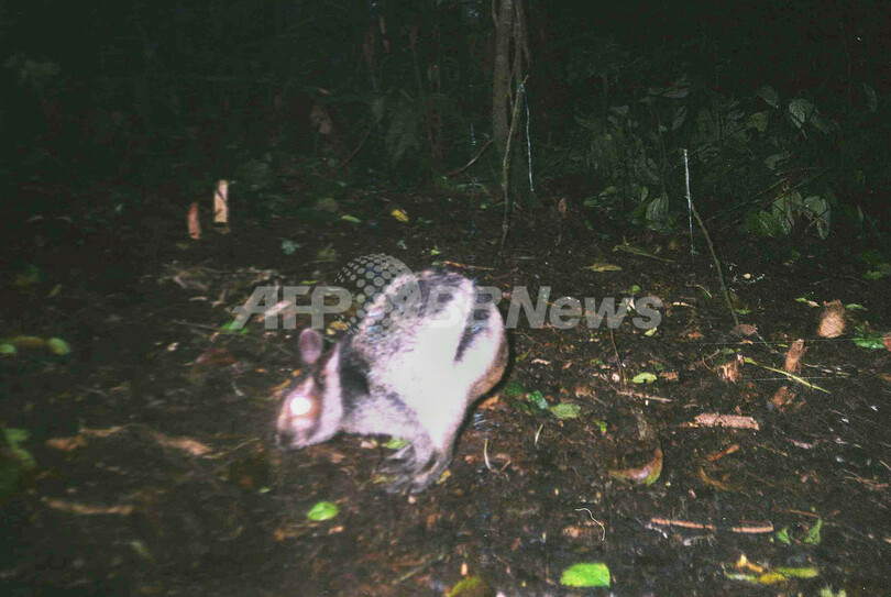 【Danau Ranau/インドネシア 6日 AFP】南スマトラ州(South Sumatra)とランプン州(Lampung)の間に位置するDanau Ranauで、珍しいスマトラシマウサギの姿がカメラに収められた。スマトラシマウサギは絶滅の危機にひんしており、環境保護活動家によれば、1972年以来、目撃件数は今回でわずか4件目になるという。写真は6日に公開されたスマトラシマウサギの映像。(c)AFP/WILDLIFE CONSERVATION SOCIETY