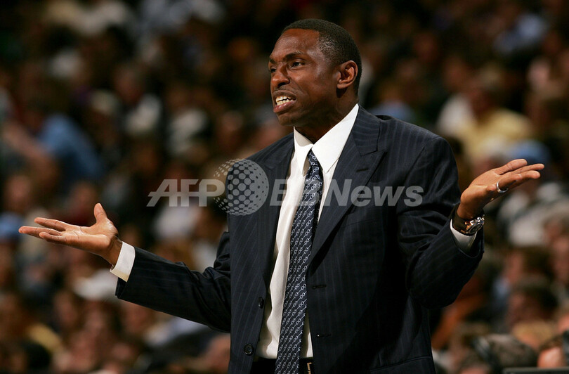 【デンバー/米国 6日 AFP】06-07NBA、デンバー・ナゲッツ(Denver Nuggets)vsダラス・マーベリックス(Dallas Mavericks)。ナゲッツのアレン・アイバーソン(Allen Iverson)はこの試合、22得点5アシストを挙げ、チームの勝利に貢献した。試合は、主導権を握られていたナゲッツが後半に逆転し、75-71でマーベリックスを破り4連勝を飾った。写真は、チームメイトのマーカス・キャンビー(Marcus Camby、左2)のスクリーンを利用してマーベリックスのデビン・ハリス(Devin Harris、中央)のマークを外し、シュート体勢に入るアイバーソン(右)。(c)AFP/Getty Images Doug Pensinger