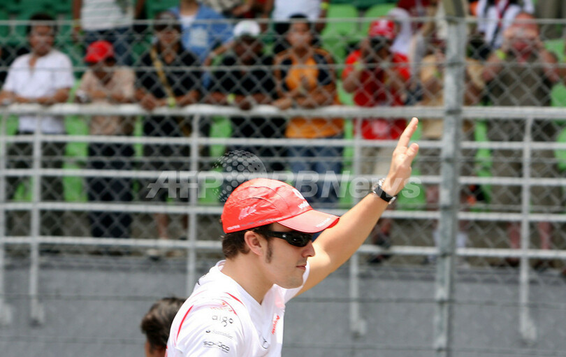 【クアラルンプール/マレーシア 8日 AFP】F1・2007年シーズン第2戦・マレーシアGP(Malaysian Grand Prix 2007)、決勝。レース前にパレードが行われ、ドライバーたちがクラシックカーやスポーツカーに乗って登場した。写真は、2番グリッドからスタートするマクラーレン・メルセデス(McLaren-Mercedes)のフェルナンド・アロンソ(Fernando Alonso)。(c)AFP/TEH ENG KOON