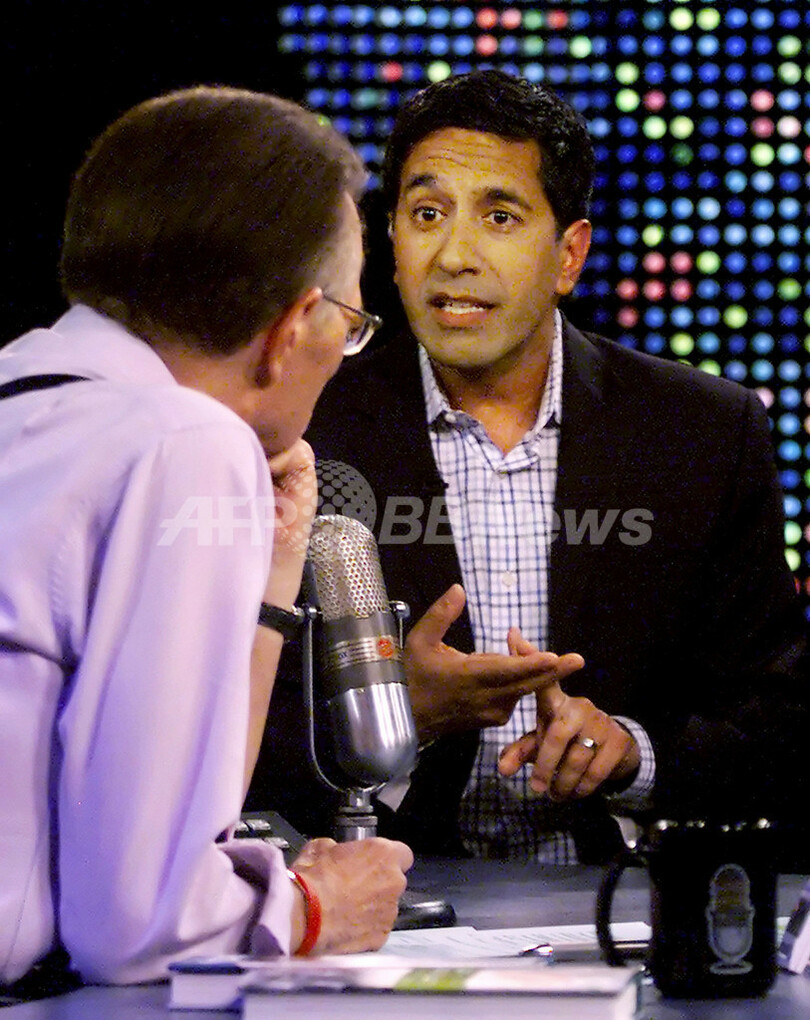 【ロサンゼルス/米国 8日 AFP】3月28日に行なわれたCNNの番組「ラリー・キング・ライブ(Larry King Live)」の収録に、ツール・ド・フランス(Tour de France)で7連覇の経験を持つランス・アームストロング(Lance Armstrong)氏、CNNの医療担当記者Sanjay Gupta氏、TV司会者オプラ・ウィンフリー(Oprah Winfrey)のトレーナーを務めるBob Greene氏が登場し、長寿と健康の秘訣(ひけつ)についてトークを繰り広げた。写真は、収録中のアームストロング氏(右)と司会のラリー・キング(Larry King)。(c)AFP/CNN/Rose M. Prouser