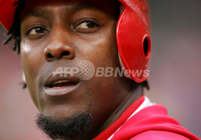 【アナハイム/米国 8日 AFP】07MLB、ロサンゼルス・エンゼルス・オブ・アナハイム(Los Angeles Angels of Anaheim)vsオークランド・アスレチックス(Oakland Athletics)。アスレチックスのミルトン・ブラッドリー(Milton Bradley)は、この試合4打数無安打に終わった。しかし試合はアスレチックスが2-1でエンゼルスを降し、今季3勝目を挙げた。写真は、チームメイトと勝利の喜ぶを分かち合うブラッドリー。(c)AFP/Getty Images Lisa Blumenfeld