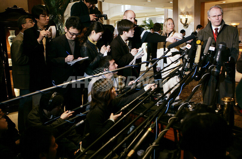 写真は3月22日、北京で記者会見したヒル米国務長官補。(c)AFP/Peter PARKS