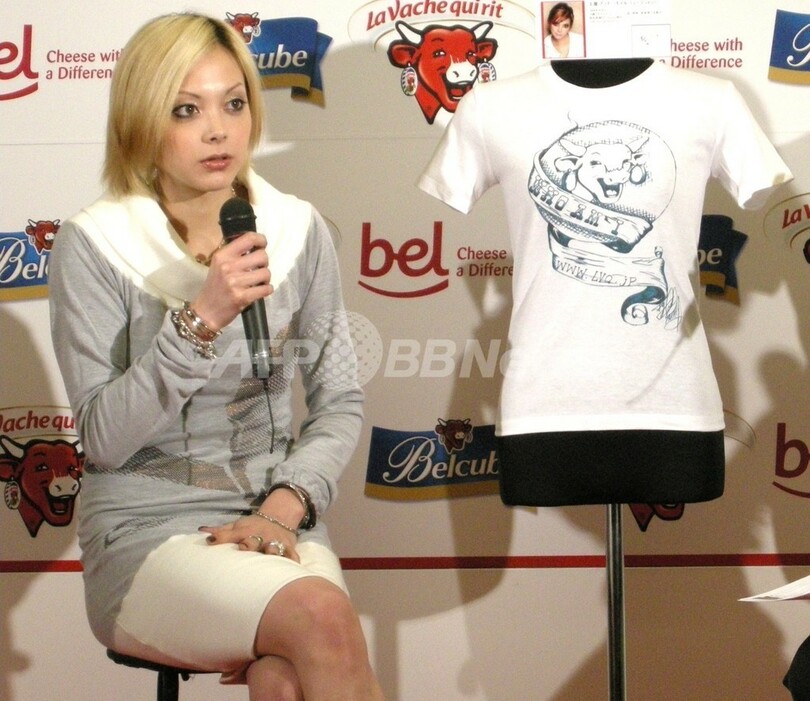 【東京 9日 AFP BB News】チーズの本場フランスから直輸入のクリーミーな一口サイズのチーズキューブ「ベルキューブ」が4月にリニューアル新発売した。ベルキューブに描かれている人気キャラクター「ラフィングカウ」はイヤリングをつけた赤い牛が特徴。この人気キャラクターをモチーフに、今回のリニューアルを記念してラフィングカウ好きの各界著名人9人がオリジナルウェアをデザインした。