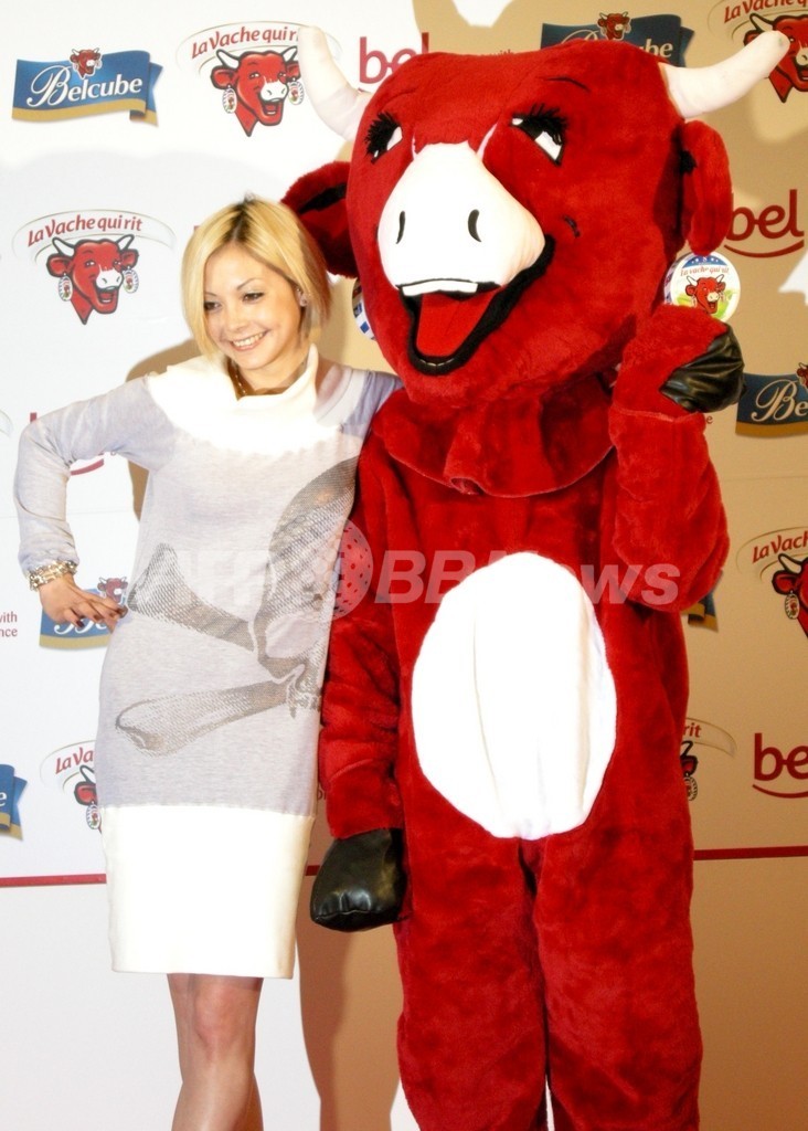 【東京 9日 AFP BB News】チーズの本場フランスから直輸入のクリーミーな一口サイズのチーズキューブ「ベルキューブ」が4月にリニューアル新発売した。ベルキューブに描かれている人気キャラクター「ラフィングカウ」はイヤリングをつけた赤い牛が特徴。この人気キャラクターをモチーフに、今回のリニューアルを記念してラフィングカウ好きの各界著名人9人がオリジナルウェアをデザインした。