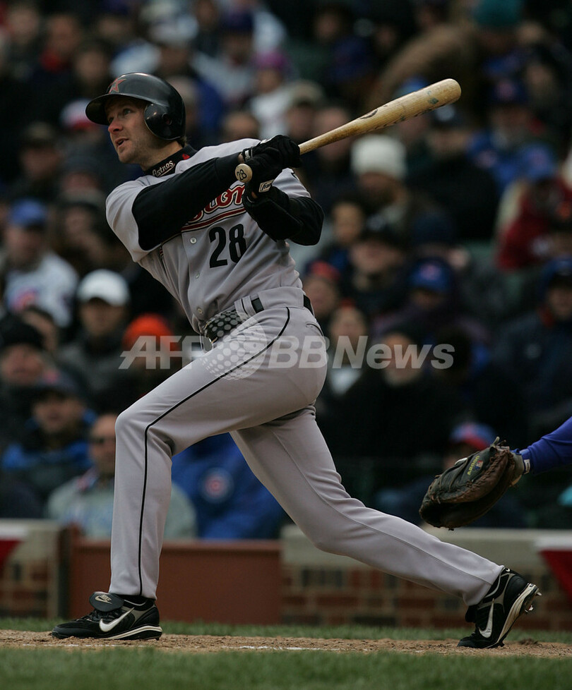 【シカゴ/米国 9日 AFP】07MLB、シカゴ・カブス(Chicago Cubs)vsヒューストン・アストロズ(Houston Astros)。7番・遊撃手で先発出場したアストロズのアダム・エベレット(Adam Everett)は、8回にシーズン第1号の逆転2ラン本塁打を放ち3打数1安打2打点を記録しチームの勝利に貢献した。試合はアストロズが5-3でカブスに勝利しシーズン2勝目を挙げた。(c)AFP/Getty Images Jonathan Daniel
