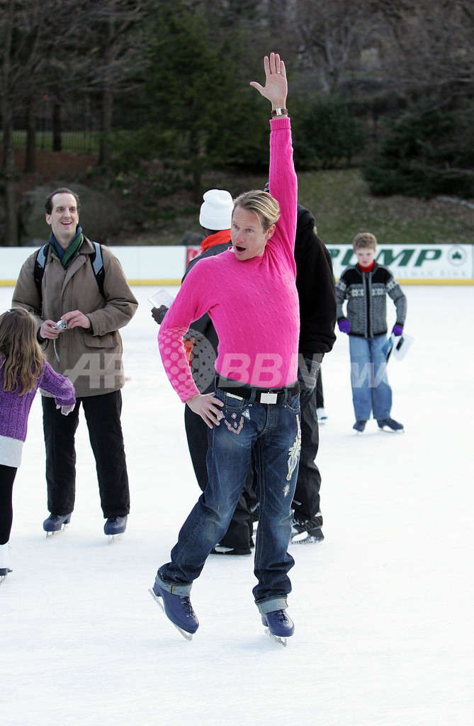 【ニューヨーク/米国 10日 AFP】ハーレム(Harlem)に住む子供たちとスケートを通して交流を深める慈善イベント「Skating With The Stars Under The Stars」が9日、ニューヨークのセントラルパーク(Central Park)のウォールマン・スケートリンク(Wollman Rink)で行われ、世界の名だたるフィギュアスケーターらが参加した。写真は、イベントでスケートを楽しむ俳優のクリストファー・メローニ(Christopher Meloni)と娘のソフィア(Sophia)ちゃん。(c)AFP/Getty Images Scott Gries