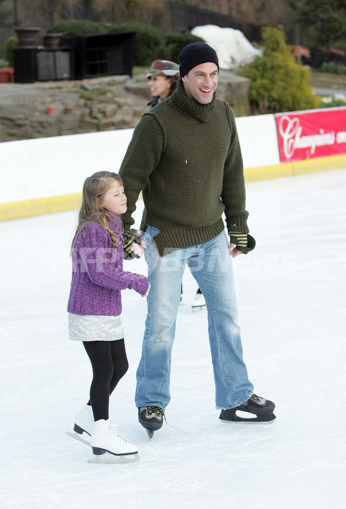 【ニューヨーク/米国 10日 AFP】ハーレム(Harlem)に住む子供たちとスケートを通して交流を深める慈善イベント「Skating With The Stars Under The Stars」が9日、ニューヨークのセントラルパーク(Central Park)のウォールマン・スケートリンク(Wollman Rink)で行われ、世界の名だたるフィギュアスケーターらが参加した。写真は、イベントでスケートを楽しむ俳優のクリストファー・メローニ(Christopher Meloni)と娘のソフィア(Sophia)ちゃん。(c)AFP/Getty Images Scott Gries