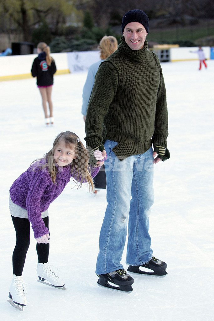 【ニューヨーク/米国 10日 AFP】ハーレム(Harlem)に住む子供たちとスケートを通して交流を深める慈善イベント「Skating With The Stars Under The Stars」が9日、ニューヨークのセントラルパーク(Central Park)のウォールマン・スケートリンク(Wollman Rink)で行われ、世界の名だたるフィギュアスケーターらが参加した。写真は、イベントでスケートを楽しむ俳優のクリストファー・メローニ(Christopher Meloni)と娘のソフィア(Sophia)ちゃん。(c)AFP/Getty Images Scott Gries