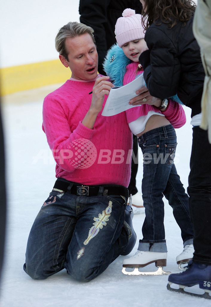 【ニューヨーク/米国 10日 AFP】ハーレム(Harlem)に住む子供たちとスケートを通して交流を深める慈善イベント「Skating With The Stars Under The Stars」が9日、ニューヨークのセントラルパーク(Central Park)のウォールマン・スケートリンク(Wollman Rink)で行われ、世界の名だたるフィギュアスケーターらが参加した。写真は、イベントでスケートを楽しむ俳優のクリストファー・メローニ(Christopher Meloni)と娘のソフィア(Sophia)ちゃん。(c)AFP/Getty Images Scott Gries
