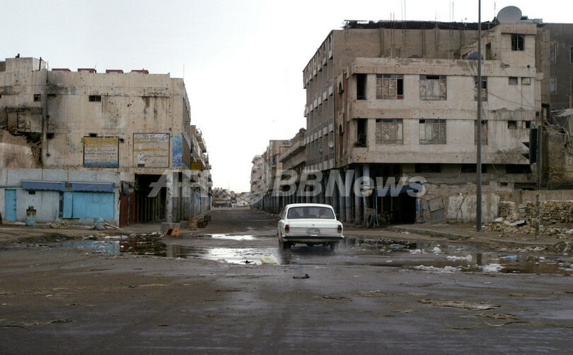 写真は同日、治安部隊による反政府グループ急襲作戦実施後のバグダッドで、人気のない道路を走る乗用車。(c)AFP/WISAM SAMI