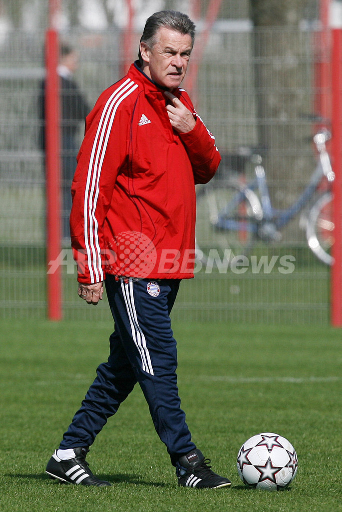 【ミュンヘン/ドイツ 10日 AFP】サッカー、欧州チャンピオンズリーグ(Champions League)・決勝トーナメント準々決勝。ACミラン(AC Milan)とのホームでの第2戦を翌11日に控えるバイエルン・ミュンヘン(Bayern Munich)は、クラブの練習場で最終調整を行った。写真は、ボールをリフティングするロイ・マカーイ(Roy Makaay)。(c)AFP/JOHN MACDOUGALL