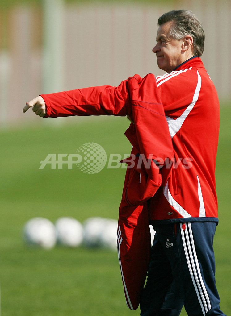 【ミュンヘン/ドイツ 10日 AFP】サッカー、欧州チャンピオンズリーグ(Champions League)・決勝トーナメント準々決勝。ACミラン(AC Milan)とのホームでの第2戦を翌11日に控えるバイエルン・ミュンヘン(Bayern Munich)は、クラブの練習場で最終調整を行った。写真は、ボールをリフティングするロイ・マカーイ(Roy Makaay)。(c)AFP/JOHN MACDOUGALL