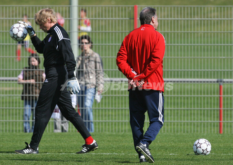 【ミュンヘン/ドイツ 10日 AFP】サッカー、欧州チャンピオンズリーグ(Champions League)・決勝トーナメント準々決勝。ACミラン(AC Milan)とのホームでの第2戦を翌11日に控えるバイエルン・ミュンヘン(Bayern Munich)は、クラブの練習場で最終調整を行った。写真は、ボールをリフティングするロイ・マカーイ(Roy Makaay)。(c)AFP/JOHN MACDOUGALL