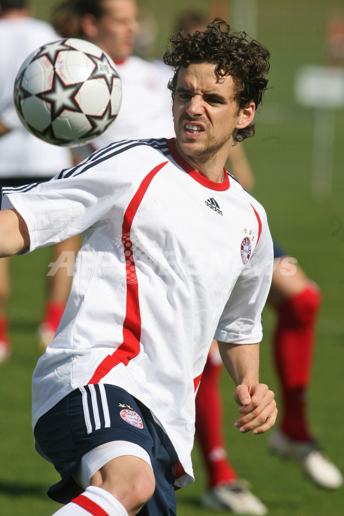 【ミュンヘン/ドイツ 10日 AFP】サッカー、欧州チャンピオンズリーグ(Champions League)・決勝トーナメント準々決勝。ACミラン(AC Milan)とのホームでの第2戦を翌11日に控えるバイエルン・ミュンヘン(Bayern Munich)は、クラブの練習場で最終調整を行った。写真は、ボールをリフティングするロイ・マカーイ(Roy Makaay)。(c)AFP/JOHN MACDOUGALL