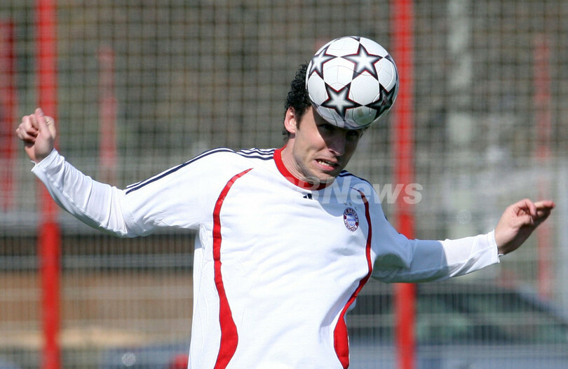 【ミュンヘン/ドイツ 10日 AFP】サッカー、欧州チャンピオンズリーグ(Champions League)・決勝トーナメント準々決勝。ACミラン(AC Milan)とのホームでの第2戦を翌11日に控えるバイエルン・ミュンヘン(Bayern Munich)は、クラブの練習場で最終調整を行った。写真は、ボールをリフティングするロイ・マカーイ(Roy Makaay)。(c)AFP/JOHN MACDOUGALL