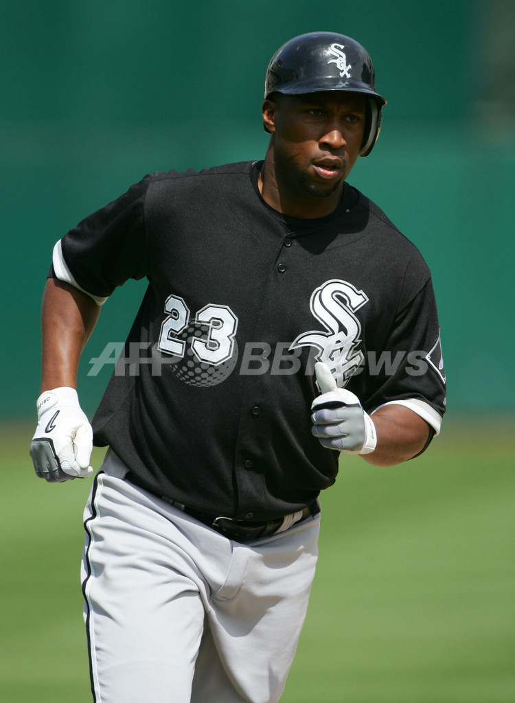 【オークランド/米国 11日 AFP】07MLB、オークランド・アスレチックス(Oakland Athletics)vsシカゴ・ホワイトソックス(Chicago White Sox)。5番・右翼で先発出場したホワイトソックスのジャーメイン・ダイ(Jermaine Dye)は、8回に2ランホームランを放つなど5打数2安打2打点の活躍。試合は終盤に5点を取ったホワイトソックスが6-3で逆転勝利を収めた。(c)AFP/Getty Images Jed Jacobsohn