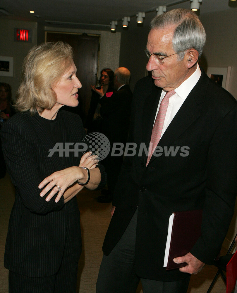【ニューヨーク/米国 12日 AFP】アメリカ詩人アカデミー(The Academy of American Poets)が主催する詩の朗読会「第5回Poetry & The Creative Mind」が11日、ニューヨークシティーで開催された。写真は、同イベントに参加した女優のグレン・クローズ(Glenn Close)と作家のデイヴィット・ハルバースタム(David Halberstam、右)。(c)AFP/Getty Images Peter Kramer