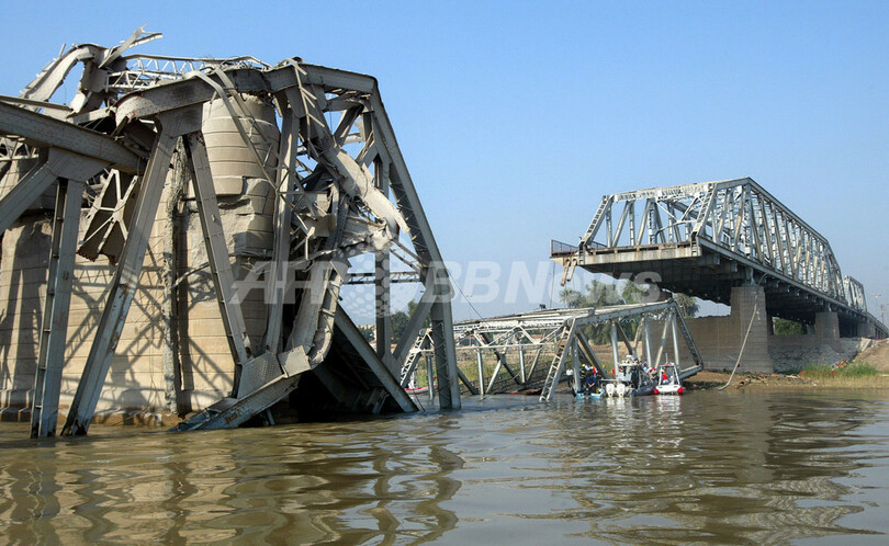 【バグダッド/イラク 12日 AFP】チグリス川(Tigris River)に架かるバグダッド(Baghdad)北部のサラフィヤ(Al-Sarafiyah)橋の上で12日、トラック内での自爆テロが発生し、橋が崩れ、10人の死者が出た。治安当局が明らかにした。