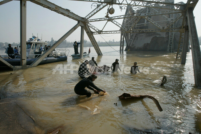 【バグダッド/イラク 12日 AFP】チグリス川(Tigris River)に架かるバグダッド(Baghdad)北部のサラフィヤ(Al-Sarafiyah)橋の上で12日、トラック内での自爆テロが発生し、橋が崩れ、10人の死者が出た。治安当局が明らかにした。