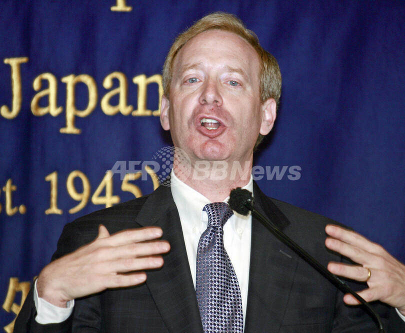 写真は12日、来日し東京で記者会見したマイクロソフトのスミスCLO。(c)AFP/Yoshikazu TSUNO