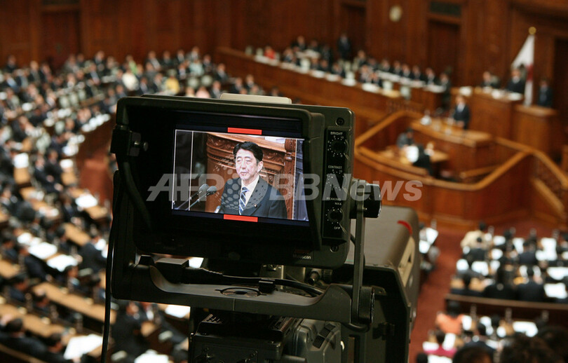 写真は、衆院本会議で施政方針演説を行う安倍首相(2007年1月26日撮影)。(c)AFP/KAZUHIRO NOGI