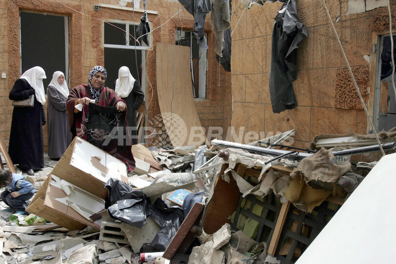 写真はヨルダン川西岸(West Bank)の都市Qalqiliyaで14日、イスラエル軍によって破壊された家屋のがれきの中から物を運び出す人々。(c)AFP/JAAFAR ASHTIYEH