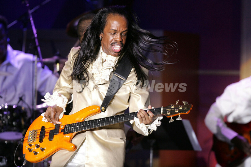 【ロサンゼルス/米国 15日 AFP】The Nancy Davis Foundation for Multiple Sclerosisが主催するチャリティ・イベント、第14回Race To Erase MS(14th Annual Race to Erase MS)が13日、センチュリーシティのハイアット・リージェンシー・センチュリー・プラザ(Hyatt Regency Century Plaza)で開催され、多くの著名人が出席した。14回目を迎えた今年のテーマは「Dance to Erase MS」。参加したアーティストらによるライヴなどで盛り上がった。同イベントで集まった募金は多発性硬化症(MS:Multiple Sclerosis)の研究資金に充てられる。写真はステージでパフォーマンスを披露するバンド、アース・ウィンド&ファイアー(Earth, Wind & Fire)の(左から)ヴァーダイン・ホワイト(Verdine White)、ラルフ・ジョンソン(Ralph Johnson)、フィリップ・ベイリー(Philip Bailey)。(c)AFP/Getty Images Frazer Harrison