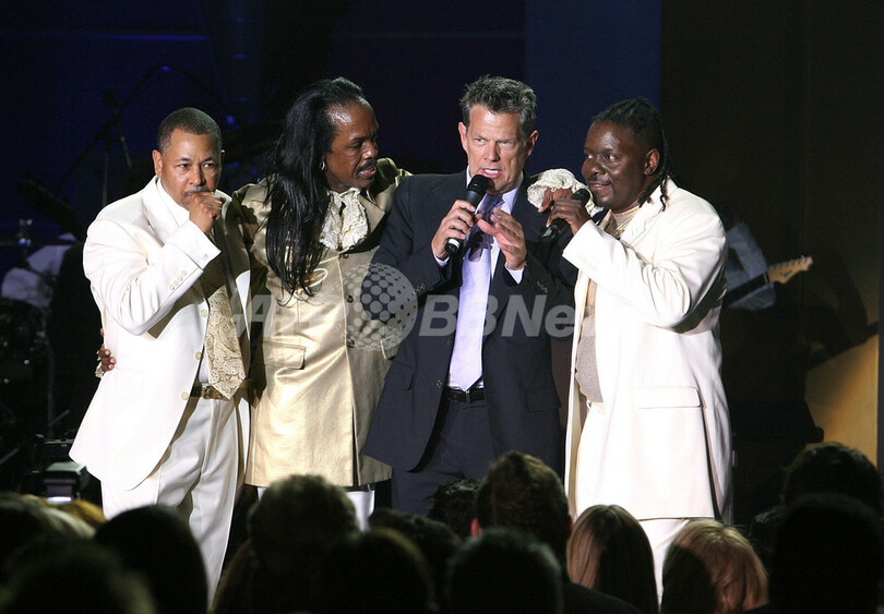 【ロサンゼルス/米国 15日 AFP】The Nancy Davis Foundation for Multiple Sclerosisが主催するチャリティ・イベント、第14回Race To Erase MS(14th Annual Race to Erase MS)が13日、センチュリーシティのハイアット・リージェンシー・センチュリー・プラザ(Hyatt Regency Century Plaza)で開催され、多くの著名人が出席した。14回目を迎えた今年のテーマは「Dance to Erase MS」。参加したアーティストらによるライヴなどで盛り上がった。同イベントで集まった募金は多発性硬化症(MS:Multiple Sclerosis)の研究資金に充てられる。写真はステージでパフォーマンスを披露するバンド、アース・ウィンド&ファイアー(Earth, Wind & Fire)の(左から)ヴァーダイン・ホワイト(Verdine White)、ラルフ・ジョンソン(Ralph Johnson)、フィリップ・ベイリー(Philip Bailey)。(c)AFP/Getty Images Frazer Harrison