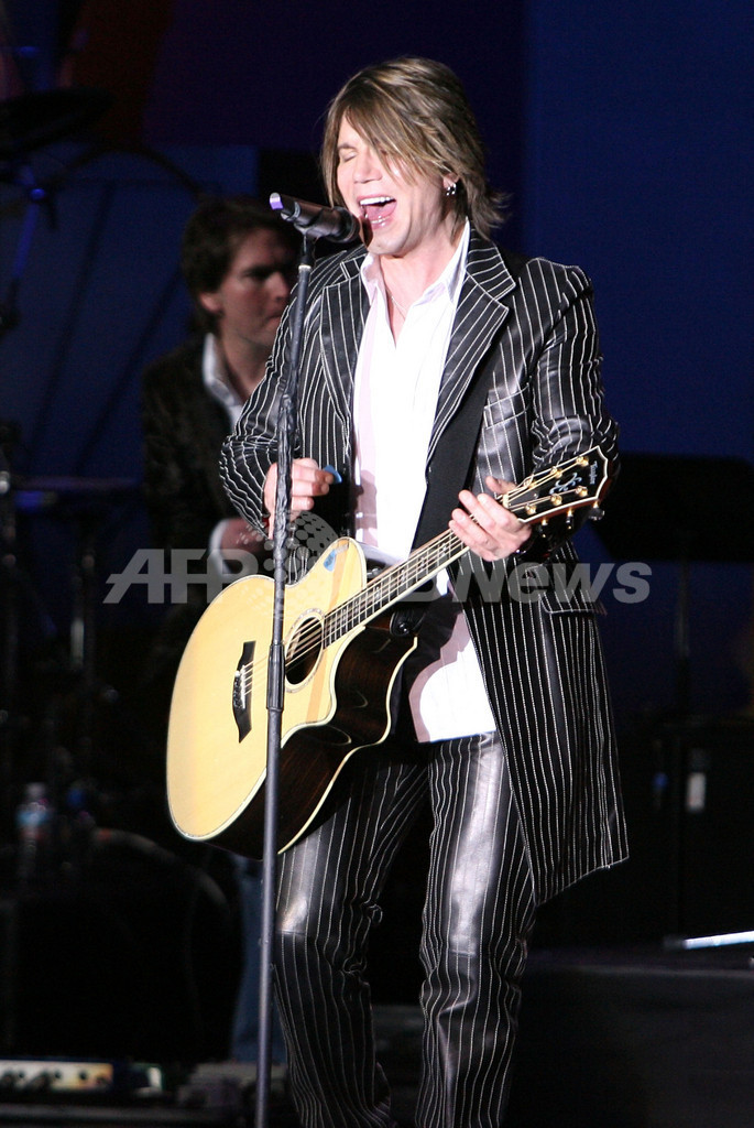 【ロサンゼルス/米国 15日 AFP】The Nancy Davis Foundation for Multiple Sclerosisが主催するチャリティ・イベント、第14回Race To Erase MS(14th Annual Race to Erase MS)が13日、センチュリーシティのハイアット・リージェンシー・センチュリー・プラザ(Hyatt Regency Century Plaza)で開催され、多くの著名人が出席した。14回目を迎えた今年のテーマは「Dance to Erase MS」。参加したアーティストらによるライヴなどで盛り上がった。同イベントで集まった募金は多発性硬化症(MS:Multiple Sclerosis)の研究資金に充てられる。写真はステージでパフォーマンスを披露するバンド、アース・ウィンド&ファイアー(Earth, Wind & Fire)の(左から)ヴァーダイン・ホワイト(Verdine White)、ラルフ・ジョンソン(Ralph Johnson)、フィリップ・ベイリー(Philip Bailey)。(c)AFP/Getty Images Frazer Harrison