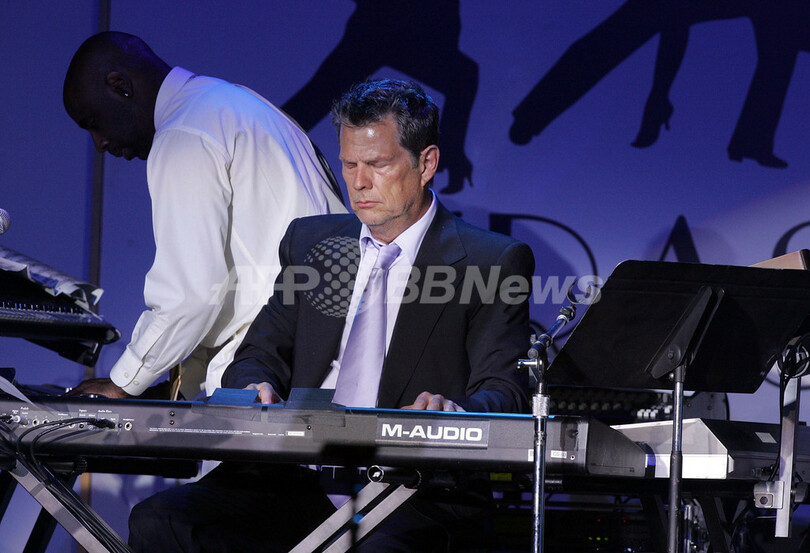 【ロサンゼルス/米国 15日 AFP】The Nancy Davis Foundation for Multiple Sclerosisが主催するチャリティ・イベント、第14回Race To Erase MS(14th Annual Race to Erase MS)が13日、センチュリーシティのハイアット・リージェンシー・センチュリー・プラザ(Hyatt Regency Century Plaza)で開催され、多くの著名人が出席した。14回目を迎えた今年のテーマは「Dance to Erase MS」。参加したアーティストらによるライヴなどで盛り上がった。同イベントで集まった募金は多発性硬化症(MS:Multiple Sclerosis)の研究資金に充てられる。写真はステージでパフォーマンスを披露するバンド、アース・ウィンド&ファイアー(Earth, Wind & Fire)の(左から)ヴァーダイン・ホワイト(Verdine White)、ラルフ・ジョンソン(Ralph Johnson)、フィリップ・ベイリー(Philip Bailey)。(c)AFP/Getty Images Frazer Harrison
