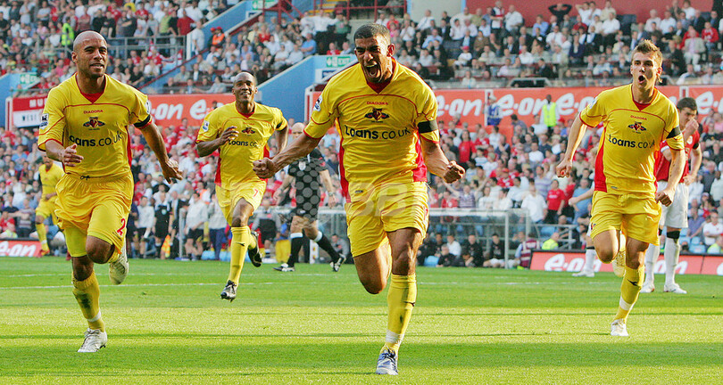 10日に行われた欧州チャンピオンズリーグ(Champions League)の準々決勝・第2戦でASローマ(AS Roma)に7-1で大勝し、勢いに乗るマンチェスター・ユナイテッドは、前半7分にマイケル・キャリック(Michael Carrick)からのパスをライアン・ギグス(Ryan Giggs)とアラン・スミス(Alan Smith)が共にスルーで流し、ボールをゴール左の位置で受けたウェイン・ルーニー(Wayne Rooney)が右足を豪快に振り抜き先制ゴールをマーク。前半26分にワトフォードのアメウル・ブアッザ(Hameur Bouazza)にロングスローからのこぼれ球を決められ一度は同点に追いつかれるも、その3分後の29分にはクリスティアーノ・ロナウド(Cristiano Ronaldo)がゴールを決め再びリードを広げて2-1で前半を折り返す。