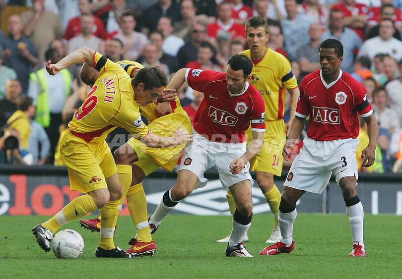 10日に行われた欧州チャンピオンズリーグ(Champions League)の準々決勝・第2戦でASローマ(AS Roma)に7-1で大勝し、勢いに乗るマンチェスター・ユナイテッドは、前半7分にマイケル・キャリック(Michael Carrick)からのパスをライアン・ギグス(Ryan Giggs)とアラン・スミス(Alan Smith)が共にスルーで流し、ボールをゴール左の位置で受けたウェイン・ルーニー(Wayne Rooney)が右足を豪快に振り抜き先制ゴールをマーク。前半26分にワトフォードのアメウル・ブアッザ(Hameur Bouazza)にロングスローからのこぼれ球を決められ一度は同点に追いつかれるも、その3分後の29分にはクリスティアーノ・ロナウド(Cristiano Ronaldo)がゴールを決め再びリードを広げて2-1で前半を折り返す。